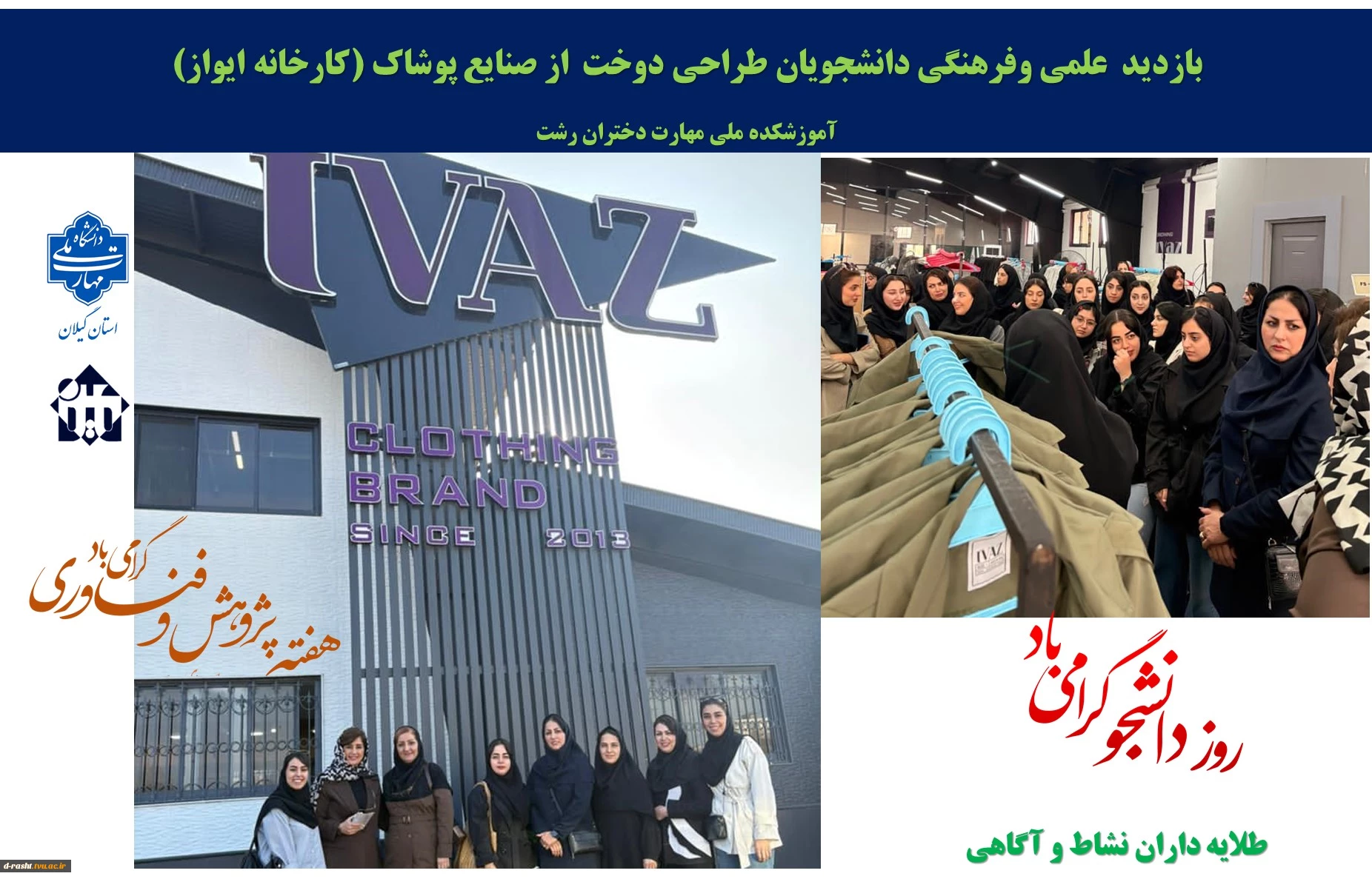 امتیاز دهید : به مناسبت گرامیداشت هفته پژوهش و اولین روز هفته گرامیداشت دانشجو با شعار (طلایه داران نشاط و آگاهی ) بازدید علمی و فرهنگی دانشجویان رشته طراحی دوخت از کارخانه پوشاک ایواز در بندر انزلی 2 شنبه 15 آذر 1404 ساعت 14:42