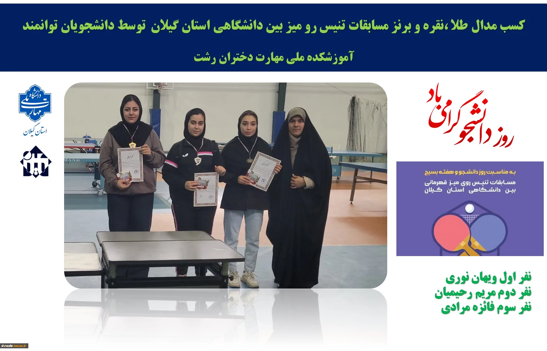 امتیاز دهید : کسب مدال طلا ،نقره و برنز انفرادی مسابقات تنیس روی میز دانشگاههای استان گیلان در دستان دانشجویان توانمند آموزشکده ملی مهارت دختران رشت 2 چهارشنبه 19 آذر 1404 ساعت 15:05